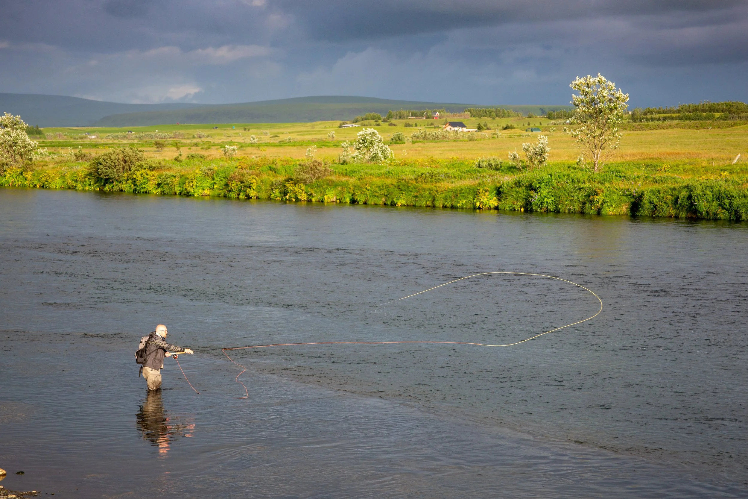 Nestled in the south west corner of Iceland about 1hr 15mins drive from the capital Reykjavik, the East Ranga and Aurora Lodge occupy a beautiful and verdant valley. Close to the famous Mount Hekla and Eyjarfjallajokull glacier it’s easy to see why so many fishers return year after year.