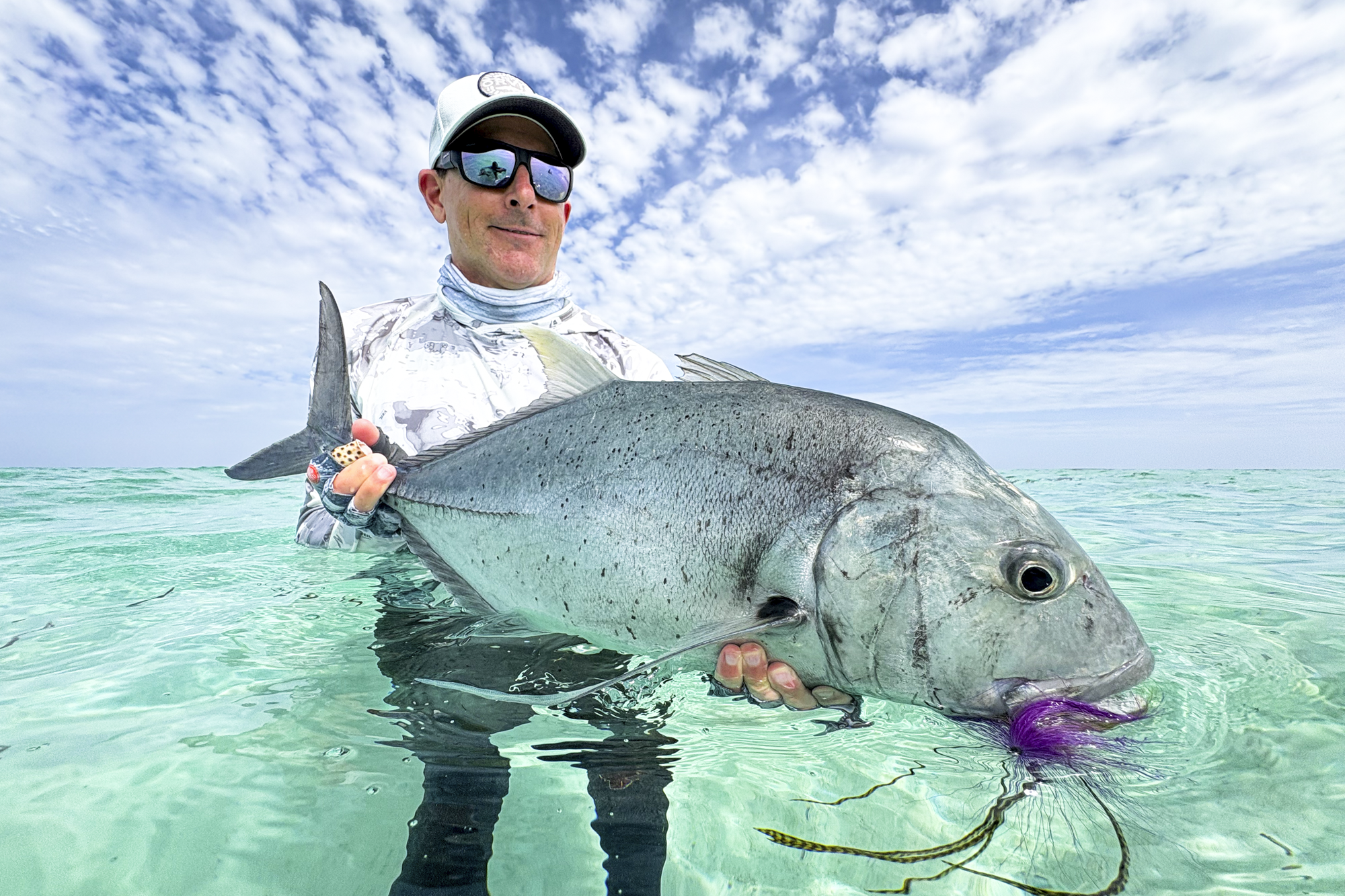Permit made a rare but spectacular appearance during the second week, delivering one of the standout moments of the January period. After several sightings and cautious follows earlier in the week, Tom B’s persistence was rewarded in unforgettable fashion when he landed a massive 75cm permit on a crystal-clear sand flat. The fish, the biggest permit of the season so far, tested skill, patience, and composure, and quickly became one of the defining highlights of the fortnight.