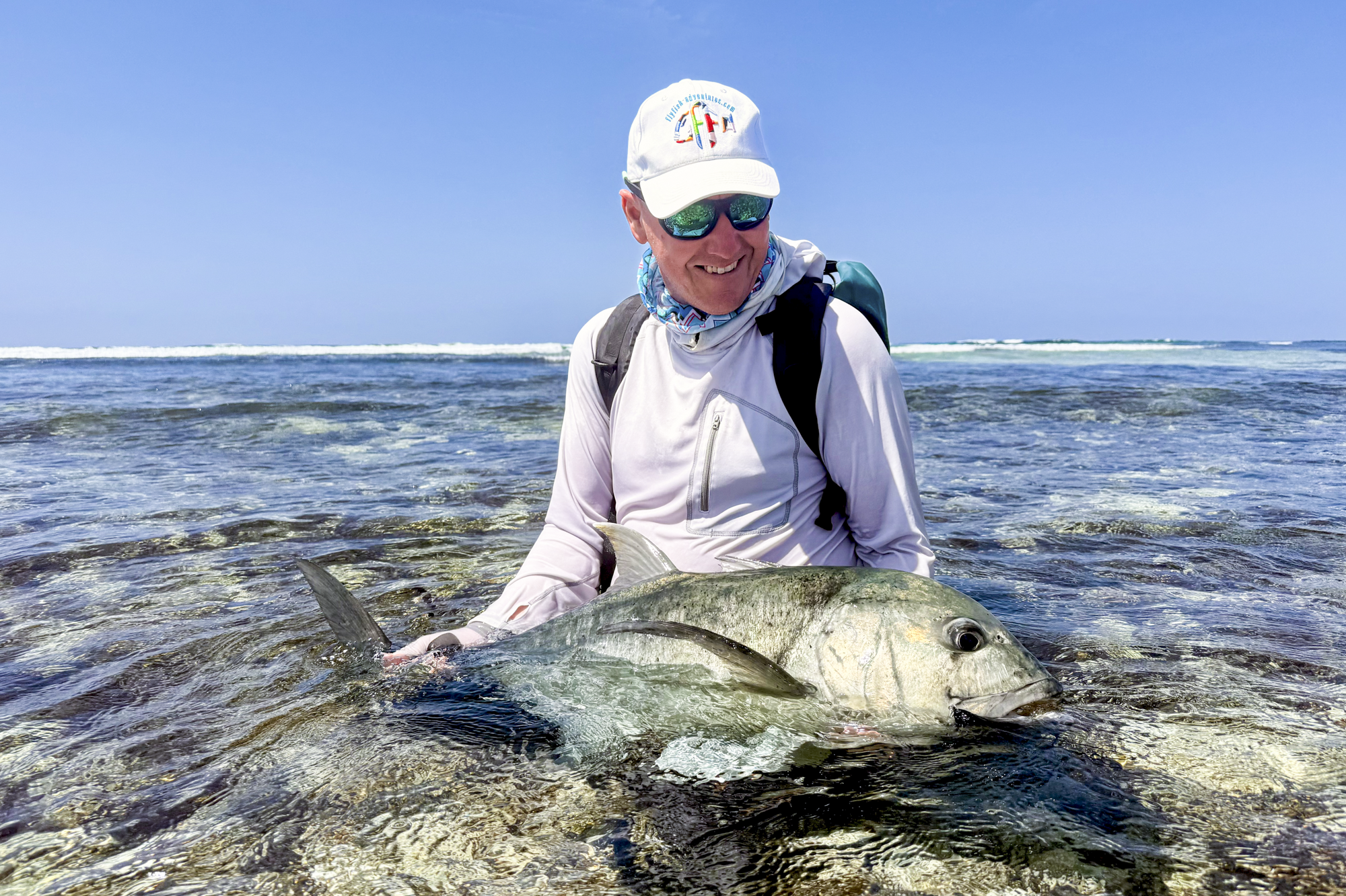 Permit fishing produced two exceptional moments. Libby spectacularly opened her week landing a special 68 cm permit on a white sand flat near Menai Island, she then went on to catch a GT and bonefish completing a slam, making for a truly memorable day. Mark equally landed a truly magnificent 70 cm Indo Pacific permit in Wizard Bay. Fishing ultra light tackle, he delivered a precise presentation and fought the fish through a long, technical battle before netting one of the week’s true highlights. Two permit, two outstanding anglers.