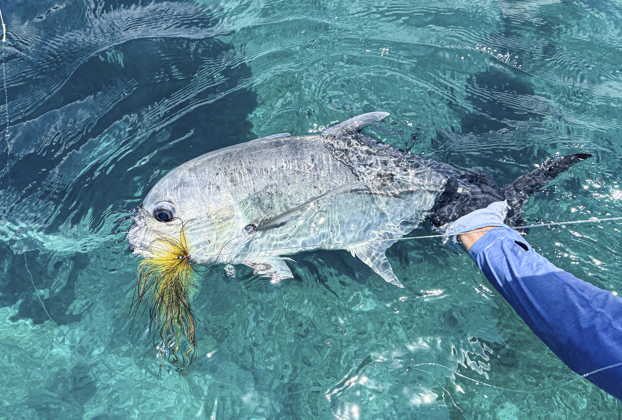 The permit have made a good account of themselves this season, with Chris landing an exceptional 77 cm permit on the flats at Menai — the largest permit landed so far this season and one of the biggest ever recorded on Cosmoledo.