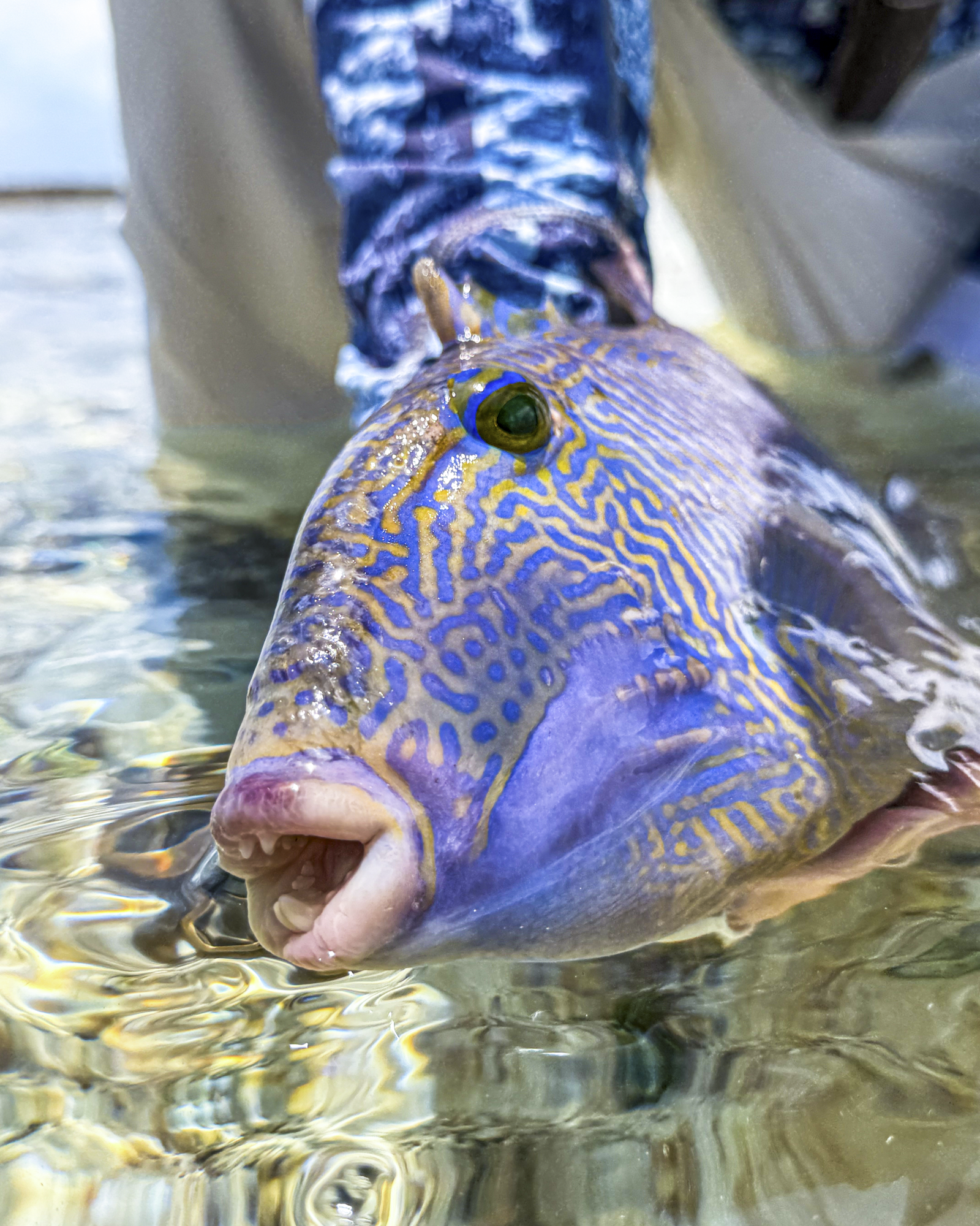 Triggerfish always add a technical and deeply satisfying dimension to flats fishing. Scott ticked off another species by landing his first moustache triggerfish. At the same time, Wesley finally achieved a long-awaited success after several trips to the Seychelles, landing an impressive 45 cm yellowmargin triggerfish.