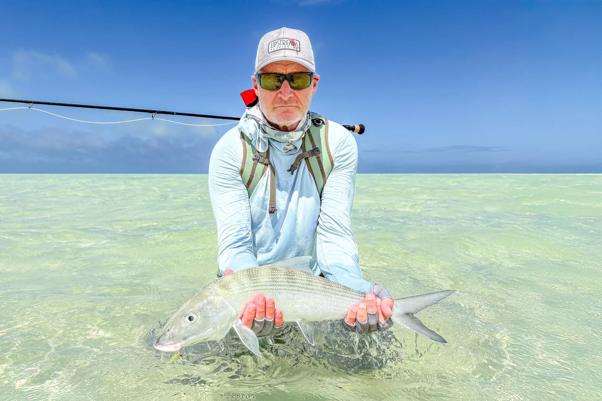 The final day arrived, and with it came a renewed determination to end the week with something memorable. The morning started with a bang as Laurentius and Andrew both brought milkfish to the net — a prized catch for any saltwater fly angler. Laurentius’s fish measured an impressive 93 cm, putting up a thrilling fight before coming to hand. Gavin and Martin decided to lean into what Alphonse is famous for: bonefish. Together they put on a show, landing fifty bonefish between them — a true testament to the world-class fishery we call home.