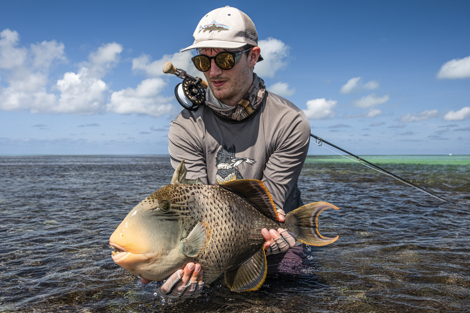 Giant trevally were the undisputed stars of the festive period on Cosmoledo. Across the four weeks, an extraordinary number of fish were landed in a wide range of environments, from shallow surf zones, skinny flats, lagoon edges and deep outer reef drop-offs. A total of 82 GT’s were landed over the period. Father-and-son pair Laurent and Joseph D both landed GTs on their first day in the surf, while Joseph added multiple triggerfish to his tally. Michael R landed his first GT on fly, opening the door to several more as the week progressed. Ethan C closed the week in style with a 104 cm GT on the final day.